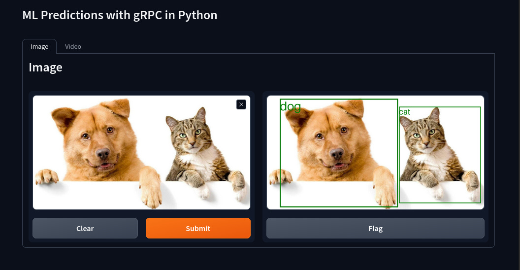[image_interface, video_interface], ["Image", "Video"], title="ML Predictions with gRPC in Python"